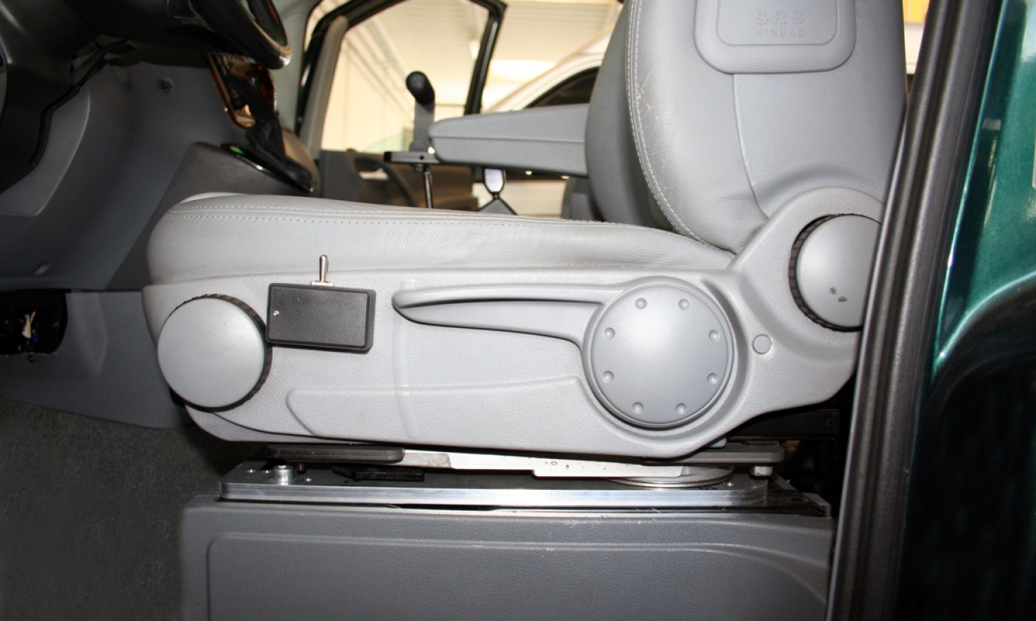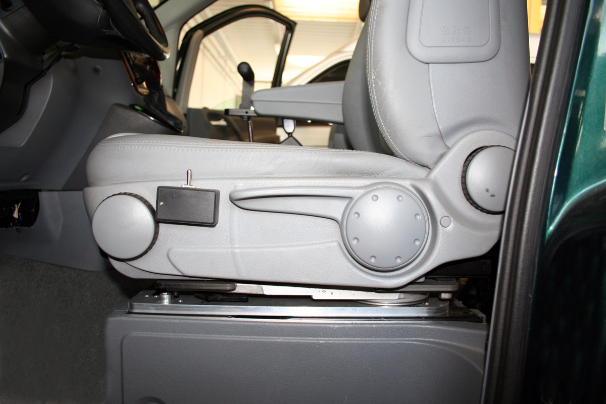La base girevole è un ausilio al trasporto adatto particolarmente a persone affette da distrofia muscolare, con limitata capacità di deambulazione, ideale per trasportare il conducente dalla carrozzina alla posizione di guida accedendo dall'interno del veicolo.