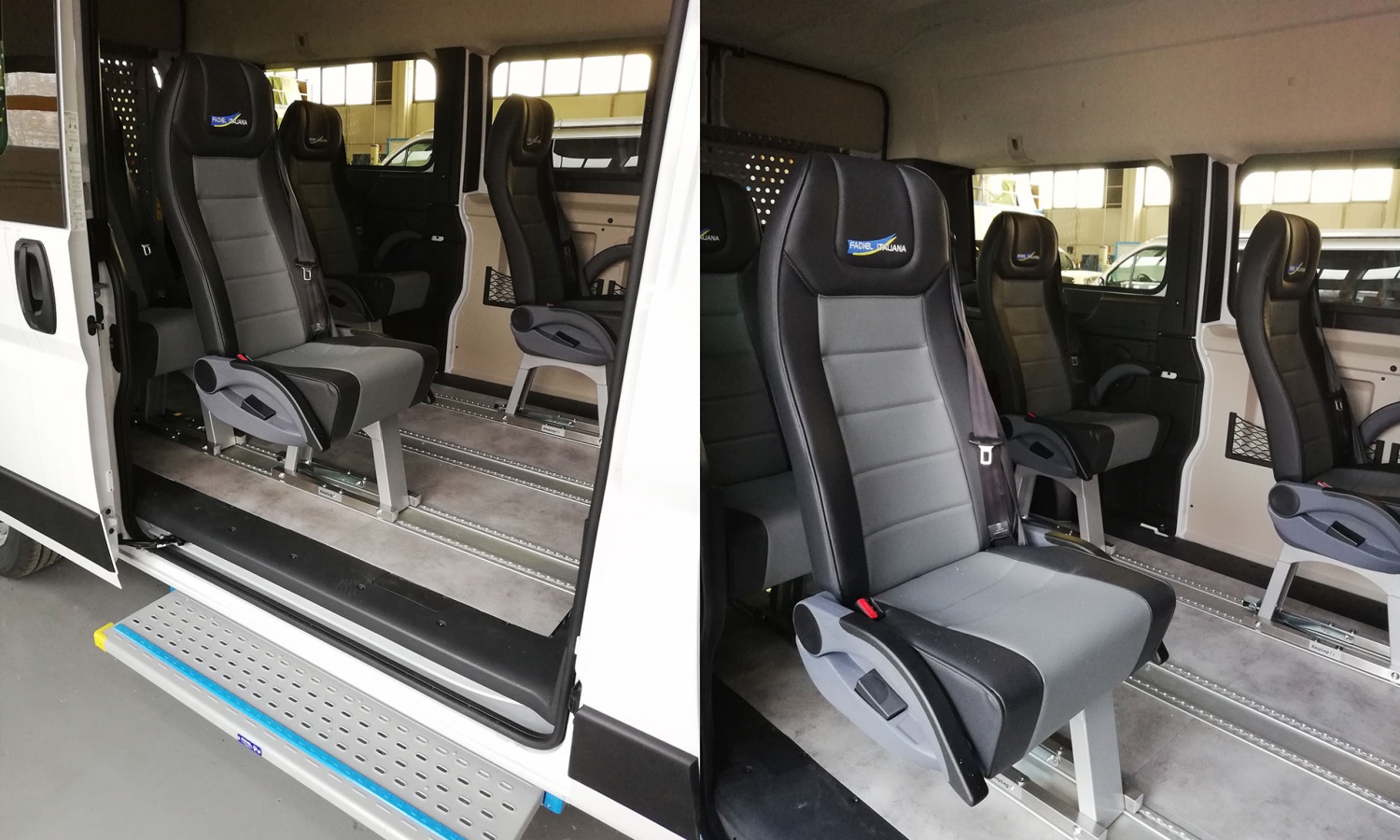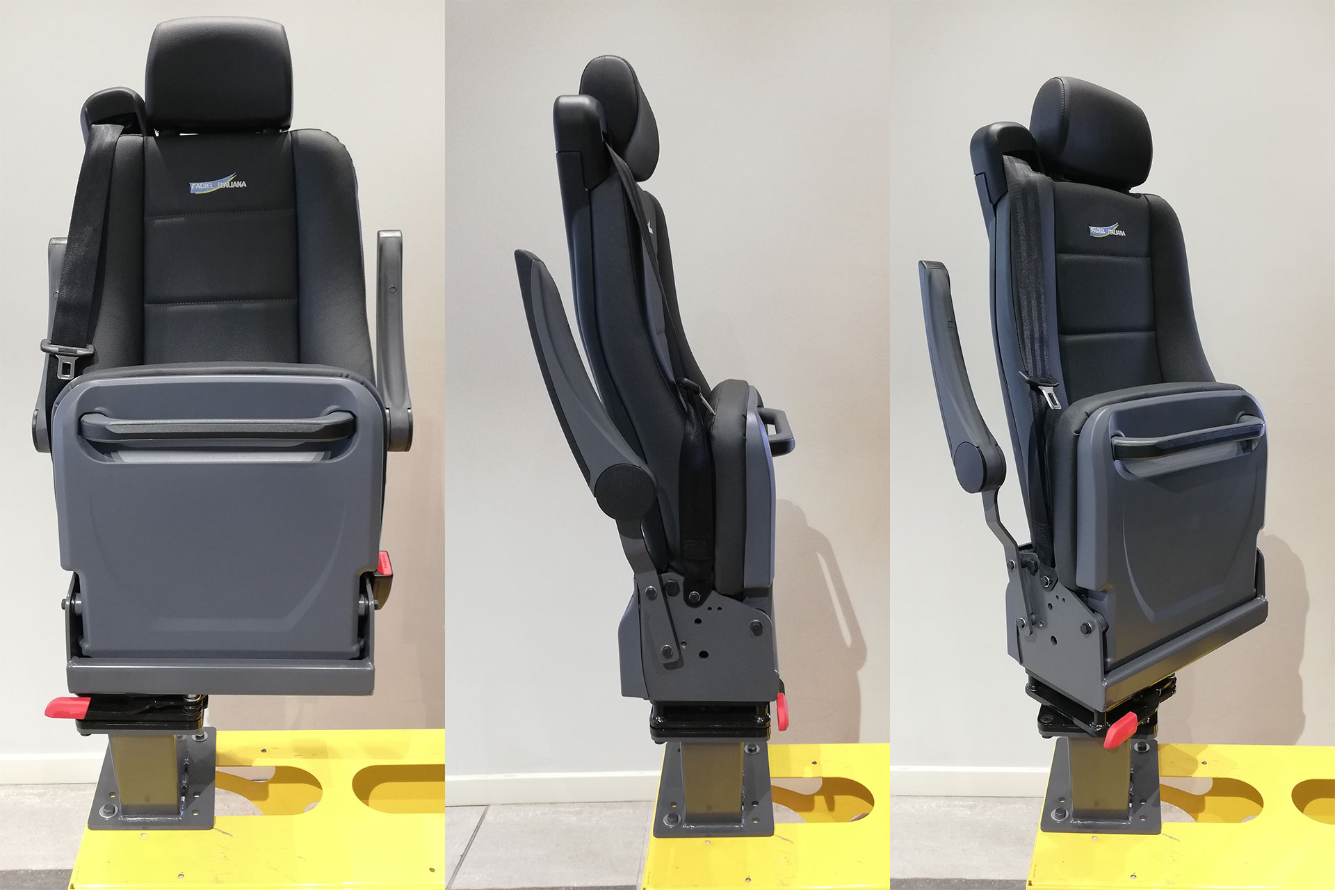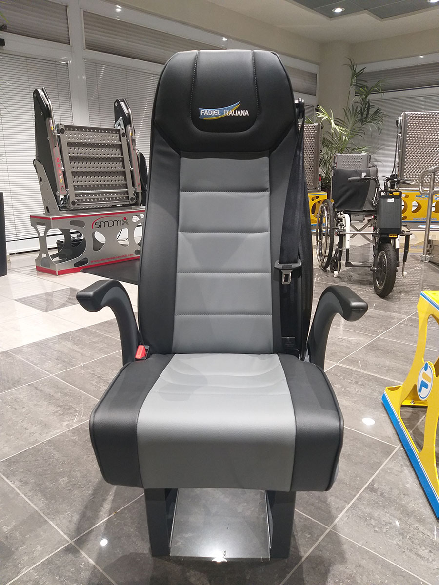 Sedile testato in classe M1 adatto per il trasporto di persone dotato di forme ergonomiche e di grande comodità.